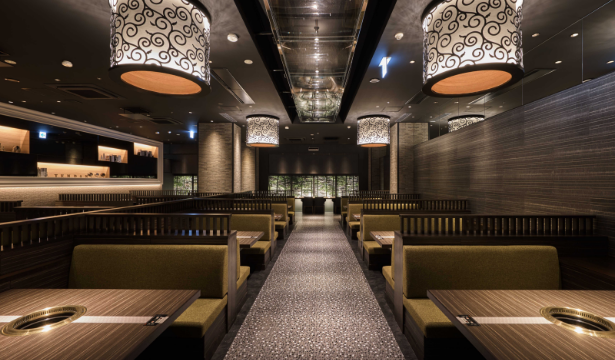 最大50名様までご利用可能な大部屋です。 店内は天井が高く、開放感のある空間です。 焼肉店には珍しい天壇ならではのラグジュアリー空間で、 ぜひお肉とお酒のマリアージュをお楽しみください。