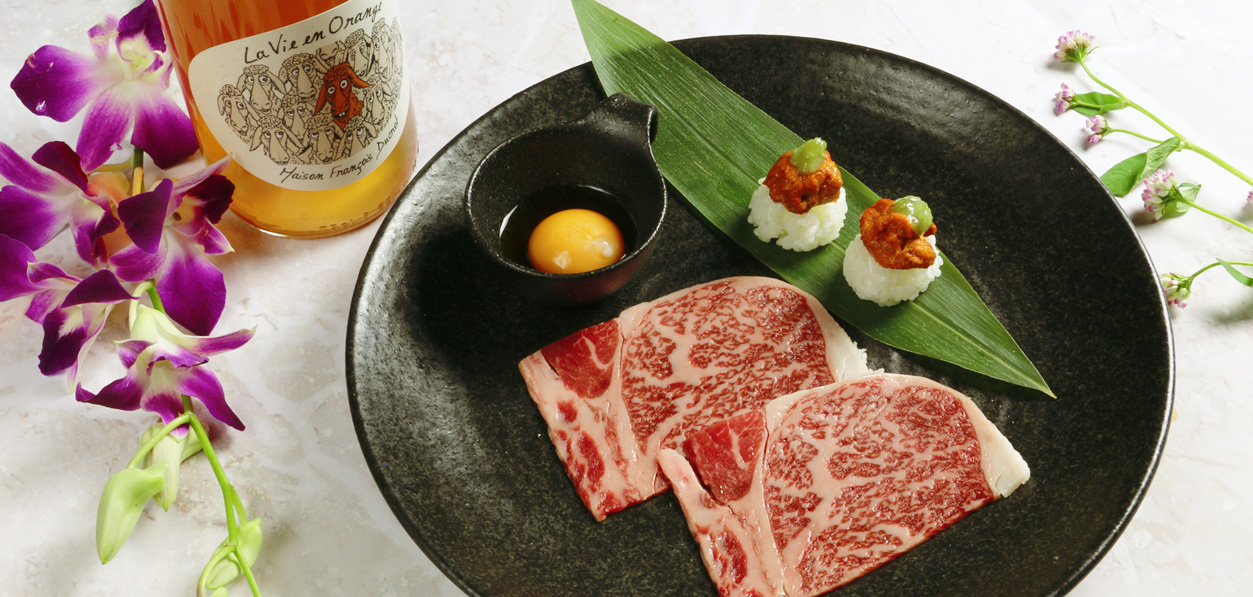 雲丹と特上ロースのなめらかな口溶けをお愉しみください。