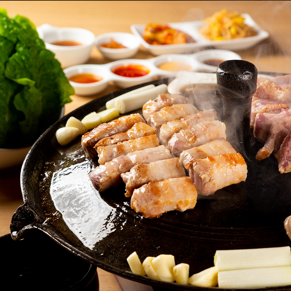 肉の旨味が口いっぱいに広がる「熟成豚肉」を使ったサムギョプサルが大人気。